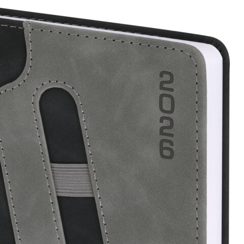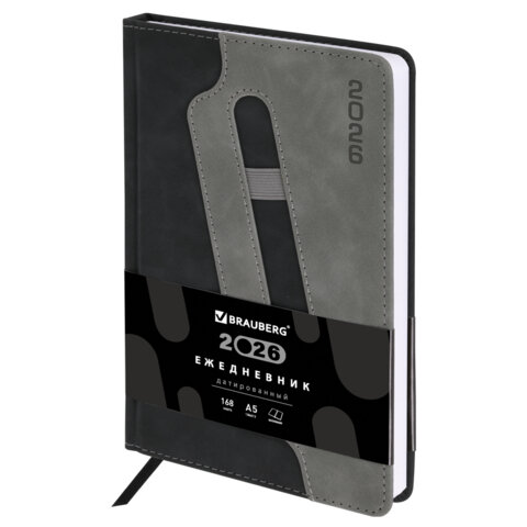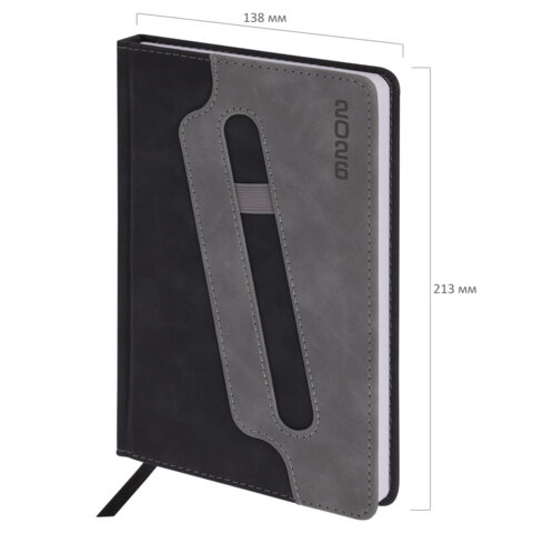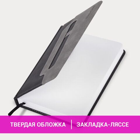 Ежедневник датированный 2026, А5, 138x213 мм, BRAUBERG "Assistant", под кожу, держатель, черный, 170197, купить в Грант СПБ