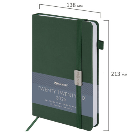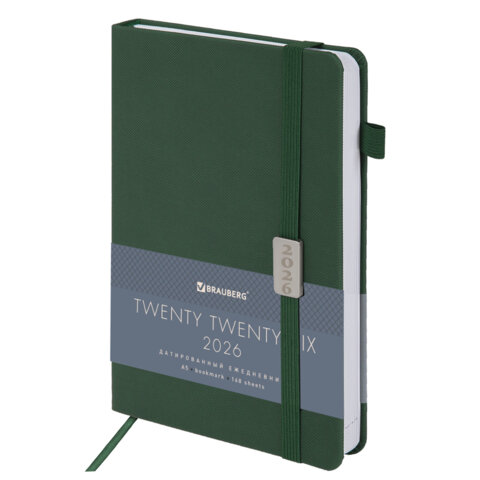 Ежедневник датированный 2026, А5, 138x213 мм, BRAUBERG "Control", под кожу, держатель для ручки, зеленый, 169974, купить в Грант СПБ