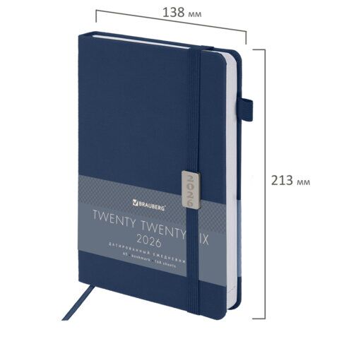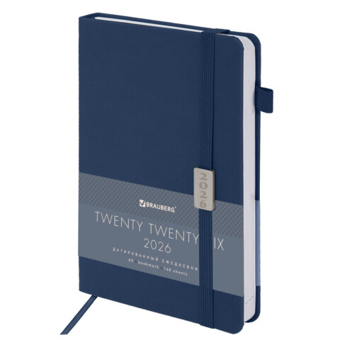 Ежедневник датированный 2026, А5, 138x213 мм, BRAUBERG "Control", под кожу, держатель для ручки, синий, 169972, купить в Грант СПБ