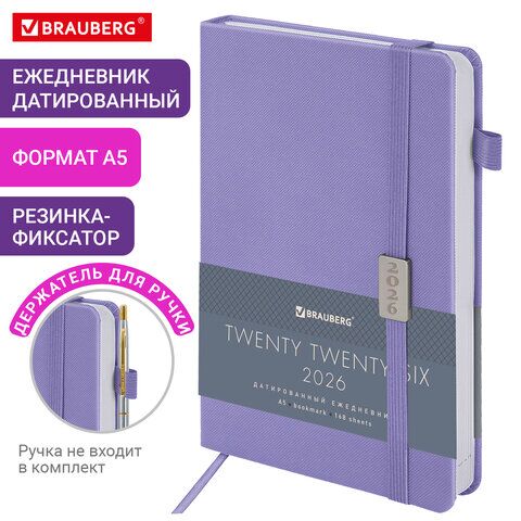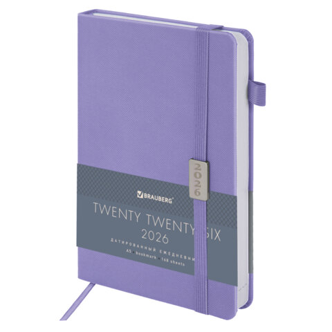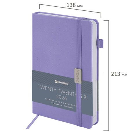 Ежедневник датированный 2026, А5, 138x213 мм, BRAUBERG "Control", под кожу, держатель для ручки, сиреневый, 169976