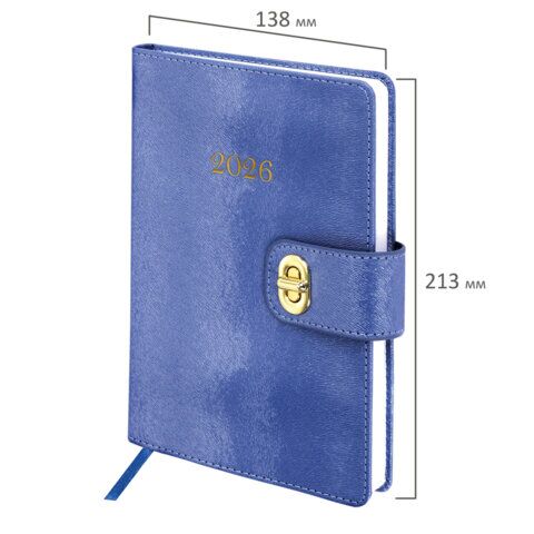 Ежедневник датированный 2026 А5 138х213 мм, BRAUBERG "Elegant", под кожу, застежка, темно-синий, 170187