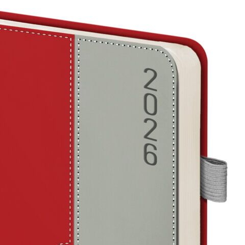 Ежедневник датированный 2026, А5, 138х213 мм, BRAUBERG "Esthetic", под кожу, держатель для ручки, застежка, красный/серый, 170192