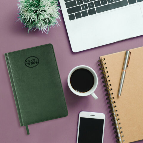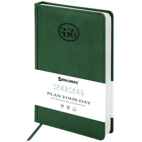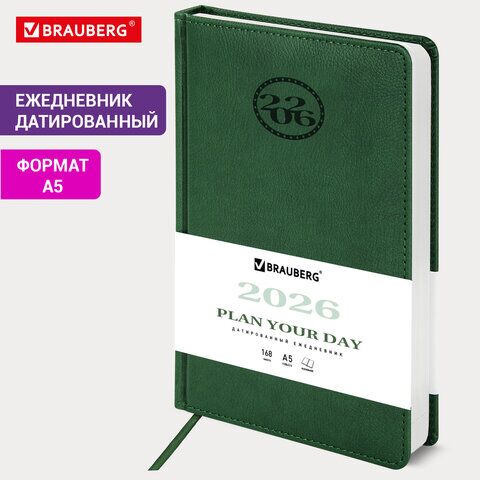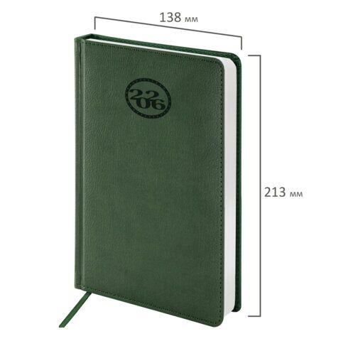 Ежедневник датированный 2026, А5, 138x213 мм, BRAUBERG "Favorite", под кожу, зеленый, 169888, купить в Грант СПБ