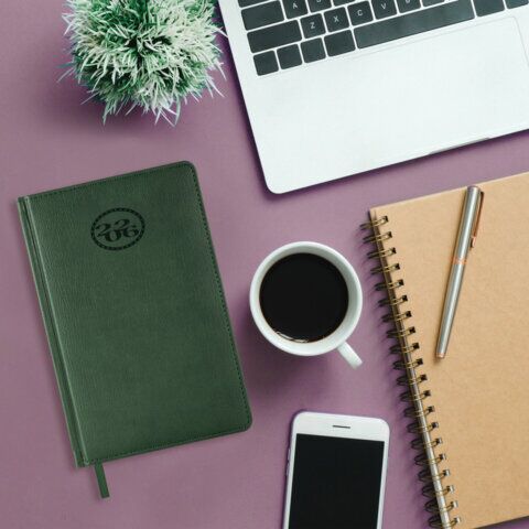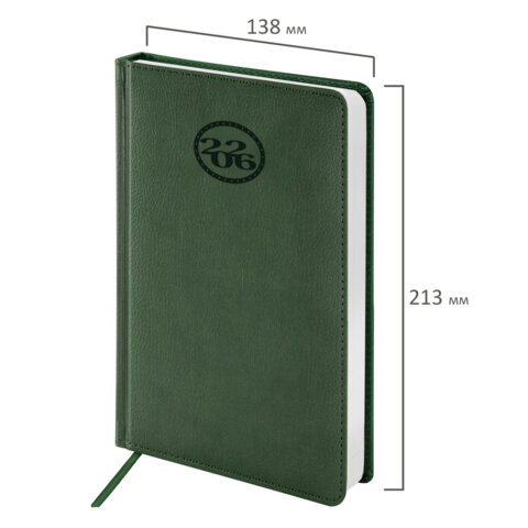 Ежедневник датированный 2026, А5, 138x213 мм, BRAUBERG "Favorite", под кожу, зеленый, 169888
