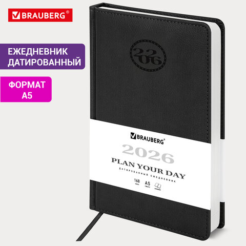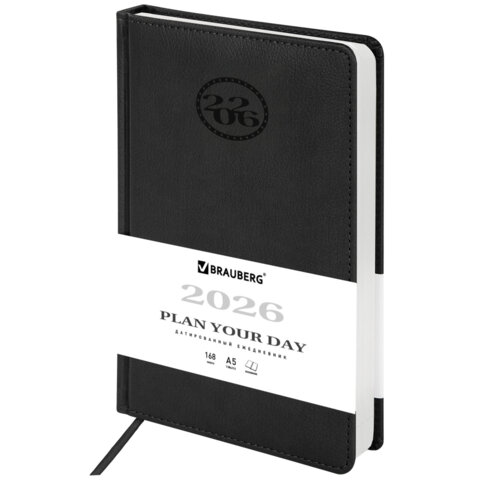 Ежедневник датированный 2026, А5, 138x213 мм, BRAUBERG "Favorite", под кожу, черный, 169887, купить в Грант СПБ