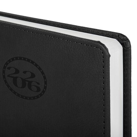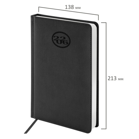Ежедневник датированный 2026, А5, 138x213 мм, BRAUBERG "Favorite", под кожу, черный, 169887