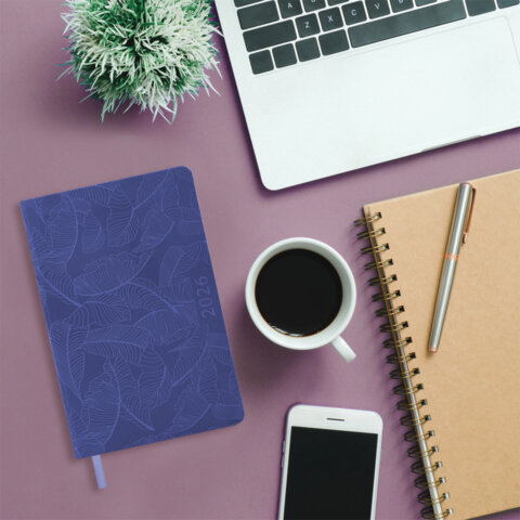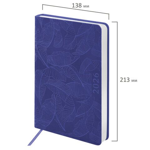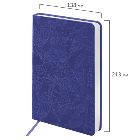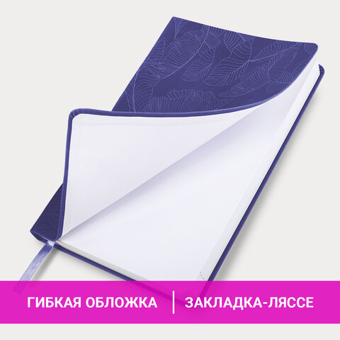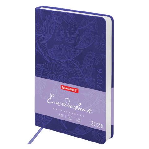 Ежедневник датированный 2026 А5 138x213 мм, BRAUBERG "Foliage", под кожу, гибкий, сиреневый, 169982, купить в Грант СПБ