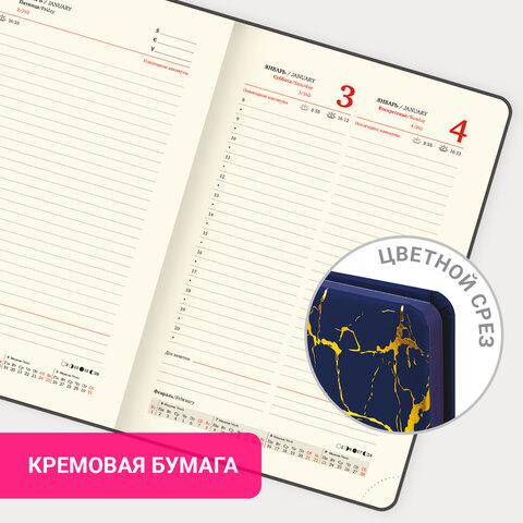 Датированный ежедневник BRAUBERG "Goldy" выполнен в оригинальном дизайне. Непревзойденное качество исполнения придаёт ему роскошный и стильный вид. Внутренний блок включает 168 листов кремовой бумаги плотностью 70 г/м2. Каждая страничка имеет перфорирован