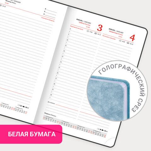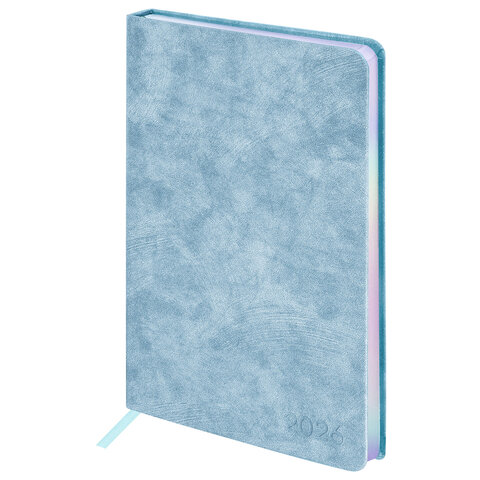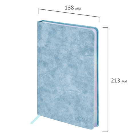 Ежедневник датированный 2026, А5, 138х213 мм, BRAUBERG "Ice", под кожу, голубой, 170209, купить в Грант СПБ