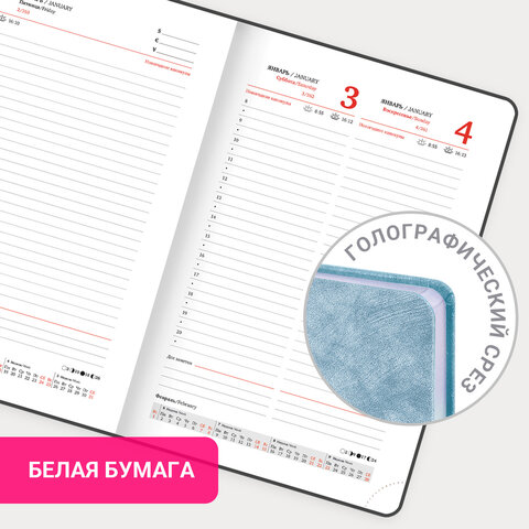 Ежедневник датированный BRAUBERG "Ice" создан для тех, кому планирование дороже, чем импровизация. Внутренний блок включает 168 листов белой бумаги плотностью 70 г/м2. Каждая страничка имеет перфорированный угол. Благодаря стандартному формату А5 (138х213