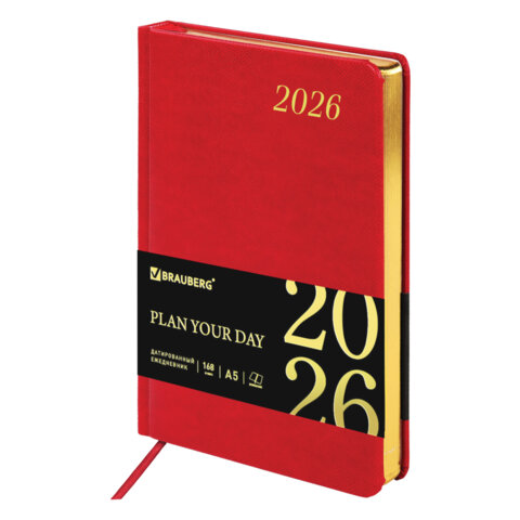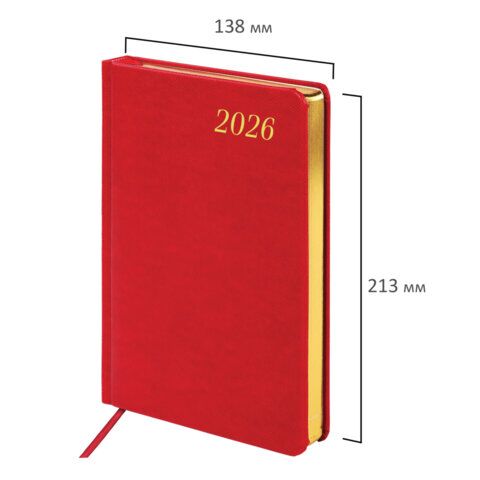 Ежедневник датированный 2026 А5 138x213 мм, BRAUBERG "Iguana", под кожу, красный, 169905, купить в Грант СПБ