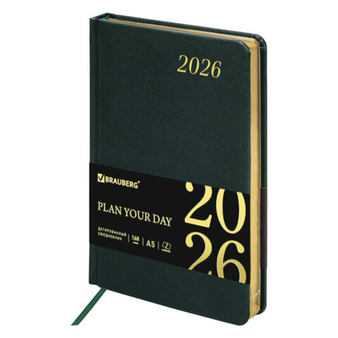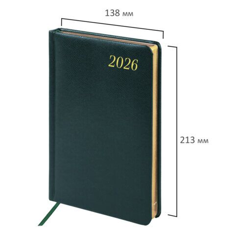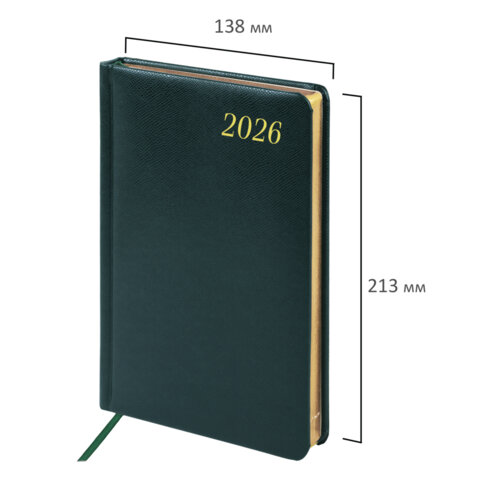 Ежедневник датированный 2026 А5 138x213 мм, BRAUBERG "Iguana", под кожу, темно-зеленый, 169908, купить в Грант СПБ