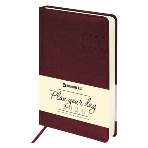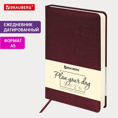 Ежедневник датированный 2026 А5 138x213 мм, BRAUBERG "Imperial", под кожу, бордо, 169910, купить в Грант СПБ