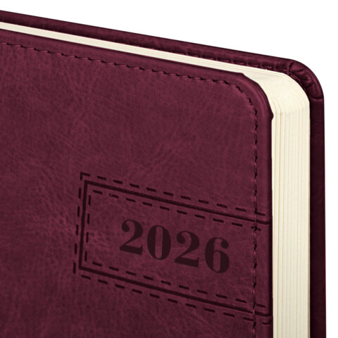 Ежедневник датированный 2026 А5 138x213 мм, BRAUBERG "Imperial", под кожу, бордо, 169910