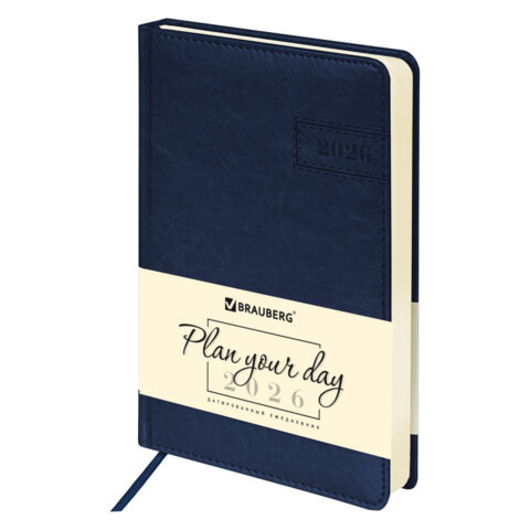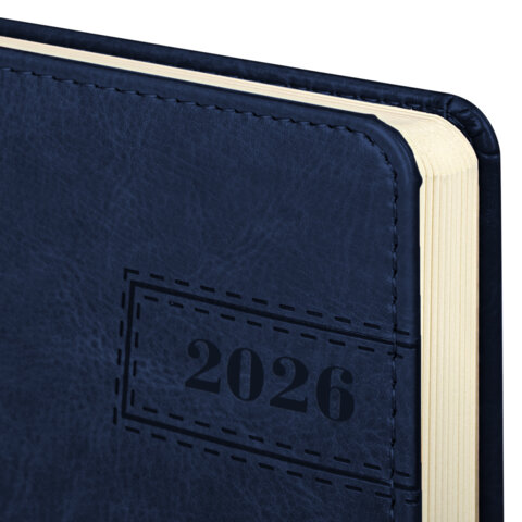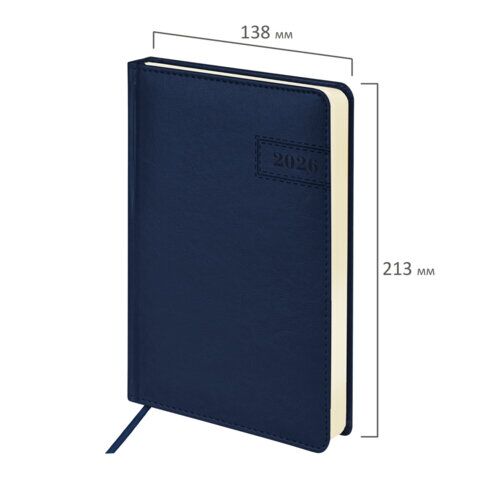 Ежедневник датированный 2026 А5 138x213 мм, BRAUBERG "Imperial", под кожу, синий, 169912