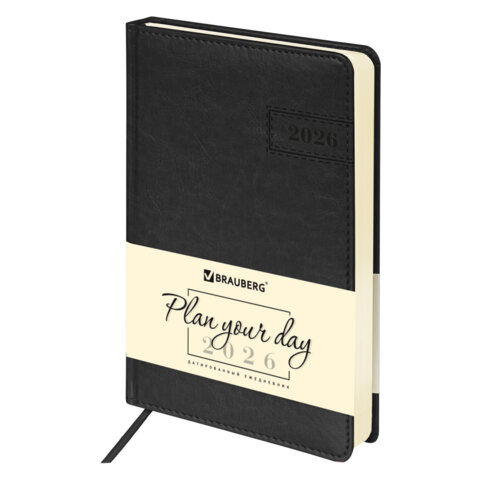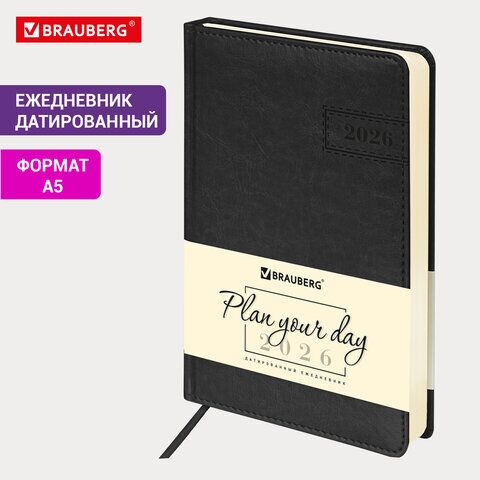 Ежедневник датированный 2026 А5 138x213 мм, BRAUBERG "Imperial", под кожу, черный, 169913, купить в Грант СПБ