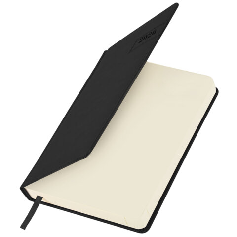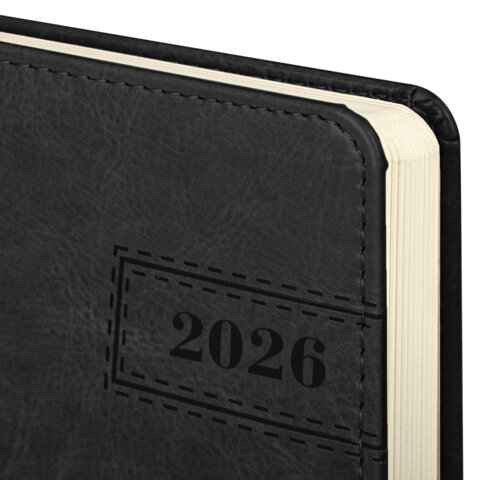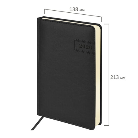 Ежедневник датированный 2026 А5 138x213 мм, BRAUBERG "Imperial", под кожу, черный, 169913