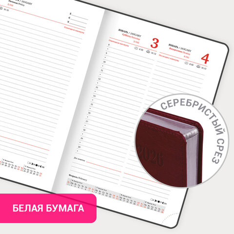 Датированный ежедневник BRAUBERG "Impression" выполнен в классическом стиле. Отличается лаконичным дизайном и аккуратным исполнением. Внутренний блок включает 168 листов белой бумаги плотностью 70 г/м2. Каждая страничка имеет перфорированный угол. Благода