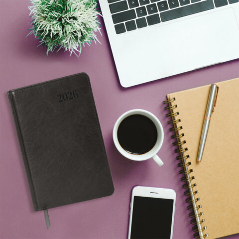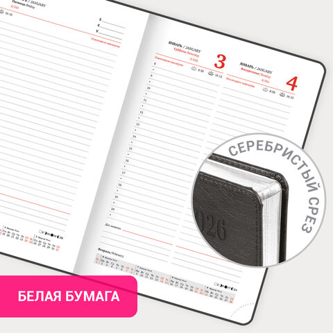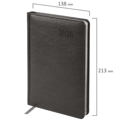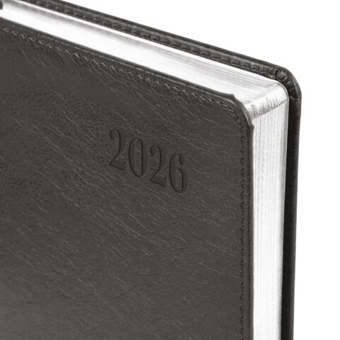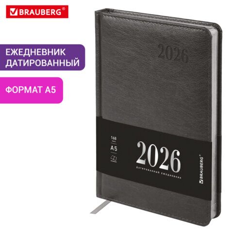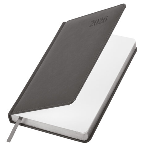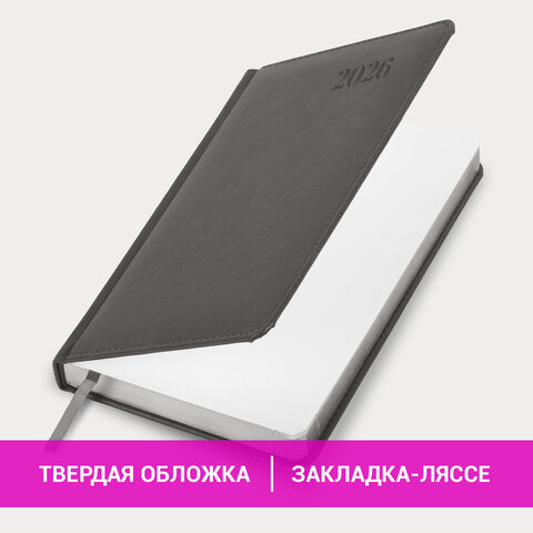 Ежедневник датированный 2026, А5, 138х213 мм, BRAUBERG "Impression", под кожу, серый, 170323, купить в Грант СПБ