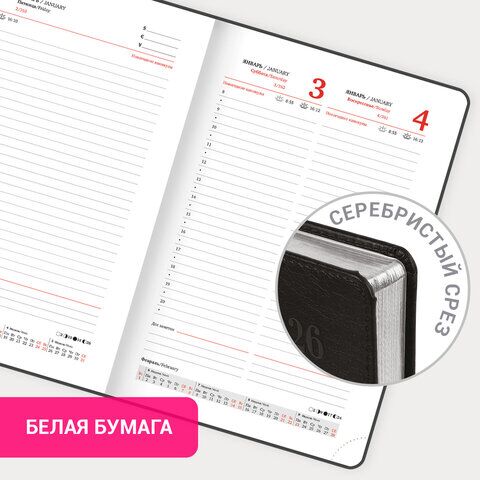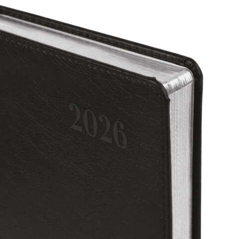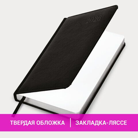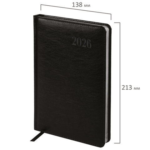 Ежедневник датированный 2026, А5, 138х213 мм, BRAUBERG "Impression", под кожу, черный, 170320