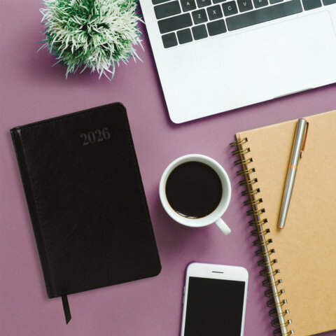 Ежедневник датированный 2026, А5, 138х213 мм, BRAUBERG "Impression", под кожу, черный, 170320, купить в Грант СПБ