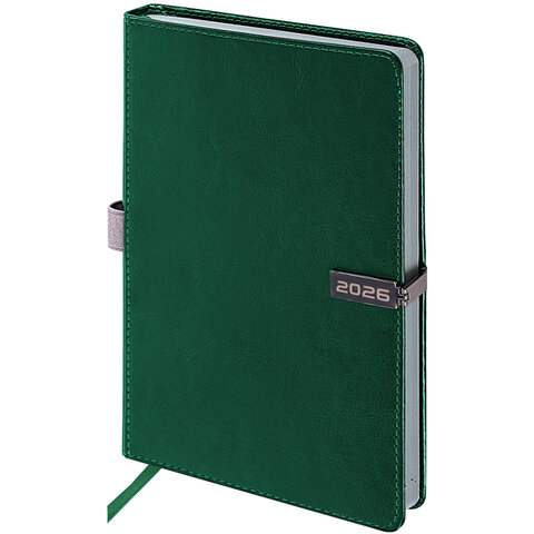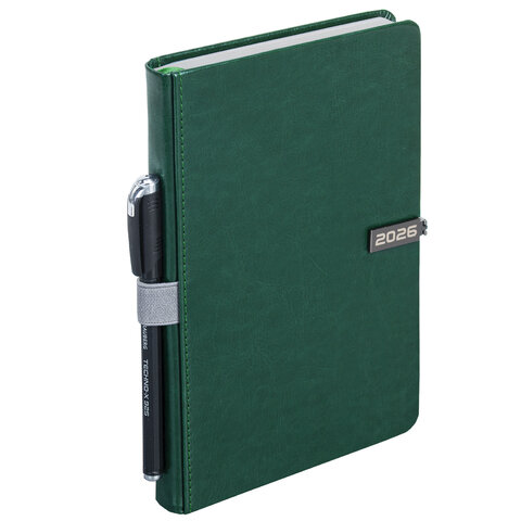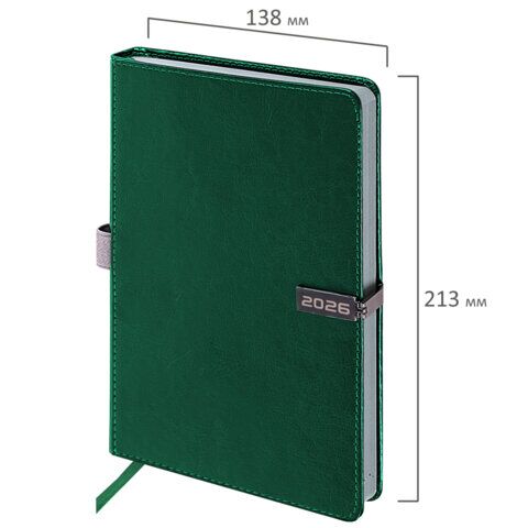Ежедневник датированный 2026 А5 138x213 мм, BRAUBERG "Inspiration", под кожу, цветной срез, темно-зеленый, 170288, купить в Грант СПБ
