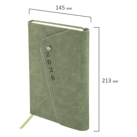 Ежедневник датированный 2026, А5, 145х213 мм, BRAUBERG "Jacket", под кожу, клапан, держатель, зеленый, 170221, купить в Грант СПБ