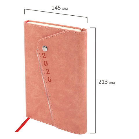 Ежедневник датированный 2026, А5, 145х213 мм, BRAUBERG "Jacket", под кожу, клапан, держатель, розовый, 170219