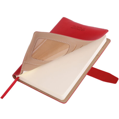 Ежедневник датированный 2026, А5, 143х218 мм, BRAUBERG "Journal", под кожу, застежка, держатель для ручки, органайзер, красный, 170201, купить в Грант СПБ