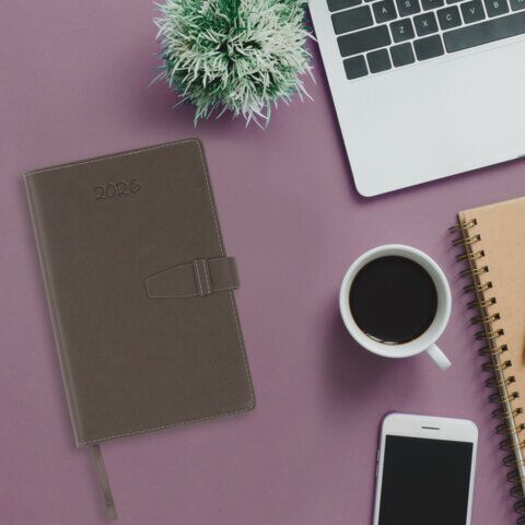 Ежедневник датированный 2026, А5, 143х218 мм, BRAUBERG "Journal", под кожу, застежка, держатель для ручки, органайзер, серый, 170202, купить в Грант СПБ