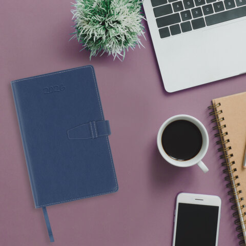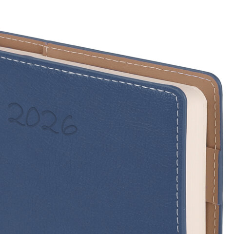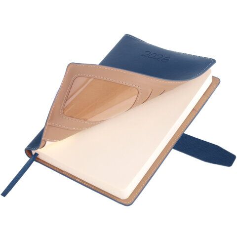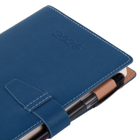 Ежедневник датированный 2026, А5, 143х218 мм, BRAUBERG "Journal", под кожу, застежка, держатель для ручки, органайзер, синий, 170200, купить в Грант СПБ