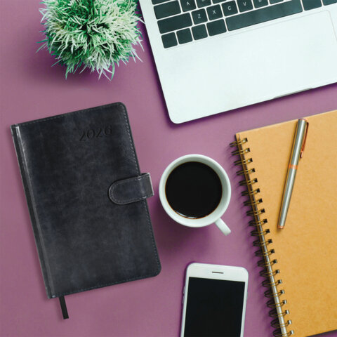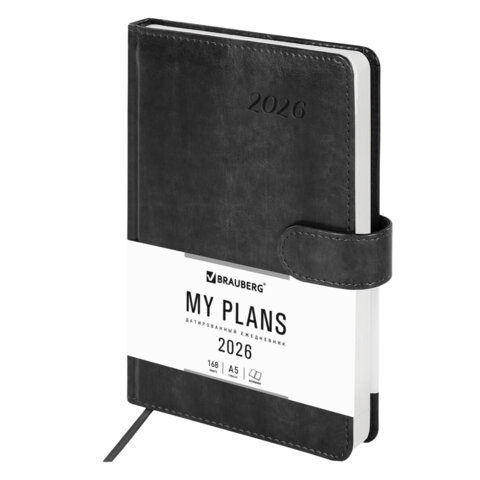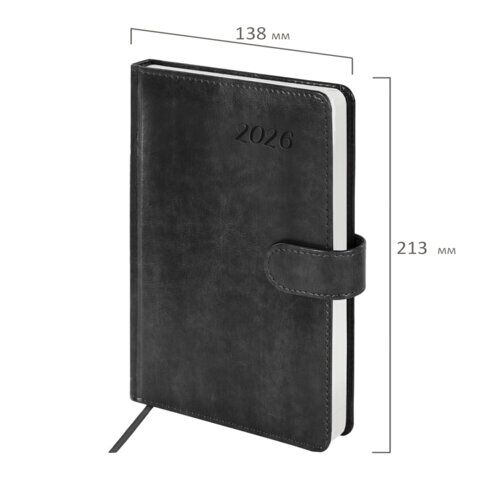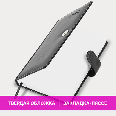 Ежедневник датированный 2026 А5 138x213 мм, BRAUBERG "Legend", под кожу, застежка, серый, 169918, купить в Грант СПБ