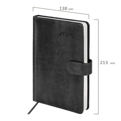 Ежедневник датированный 2026 А5 138x213 мм, BRAUBERG "Legend", под кожу, застежка, серый, 169918