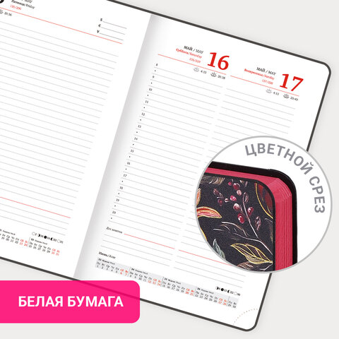 Датированный ежедневник BRAUBERG "Vista" выполнен в классическом стиле. Обложка из материала "под кожу" имеет дизайнерский принт и приятна на ощупь. Внутренний блок включает 168 листов белой бумаги плотностью 70 г/м2. Каждая страничка имеет перфорированны
