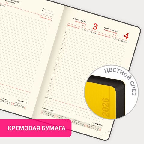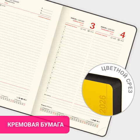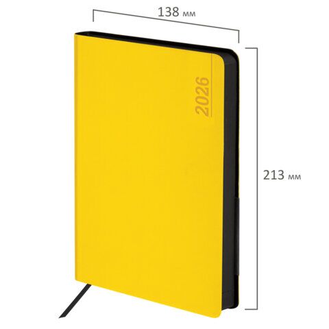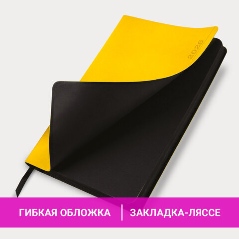 Ежедневник датированный 2026 А5 138x213 мм, BRAUBERG "Metropolis Mix", под кожу, гибкий, желтый, 170252, купить в Грант СПБ