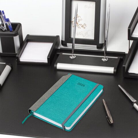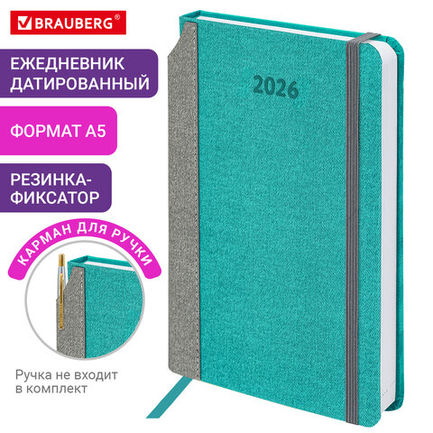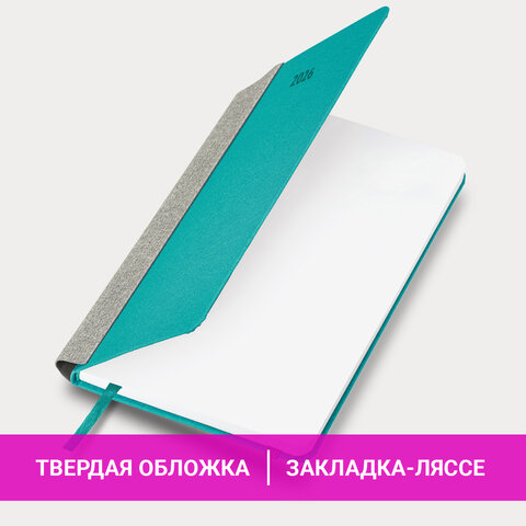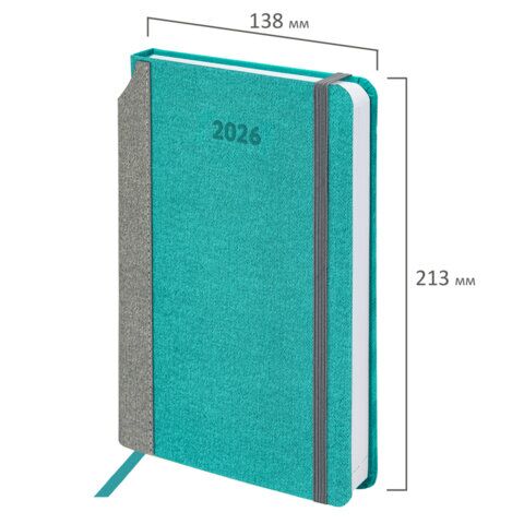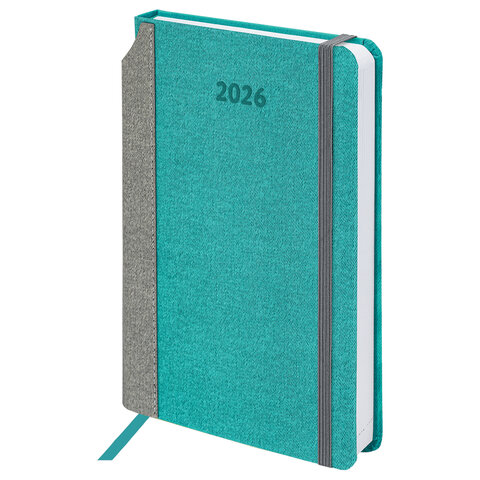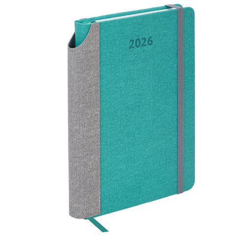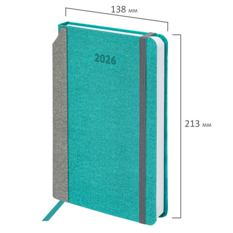 Ежедневник датированный 2026 А5 138x213 мм, BRAUBERG "Mosaic", под кожу, держатель для ручки, бирюза, 169961, купить в Грант СПБ