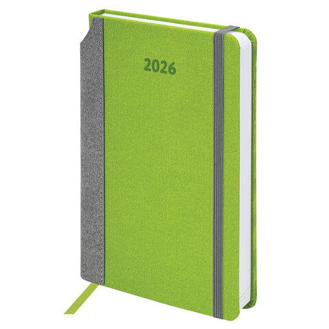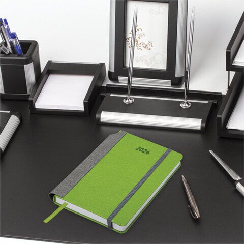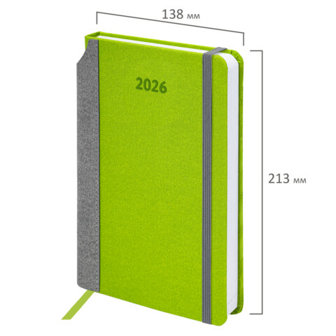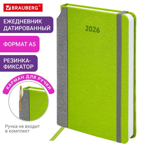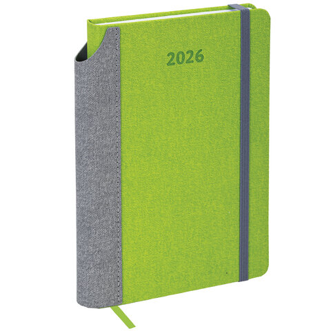 Ежедневник датированный 2026 А5 138x213 мм, BRAUBERG "Mosaic", под кожу, карман для ручки, зеленый, 169962, купить в Грант СПБ