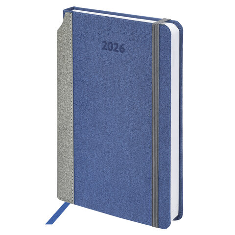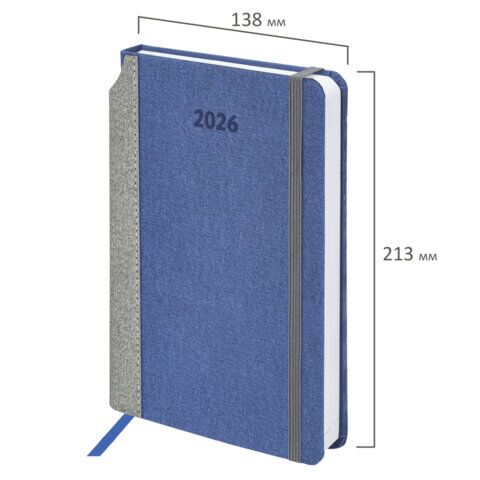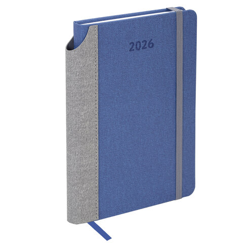 Ежедневник датированный 2026 А5 138x213 мм, BRAUBERG "Mosaic", под кожу, карман для ручки, синий, 169963, купить в Грант СПБ
