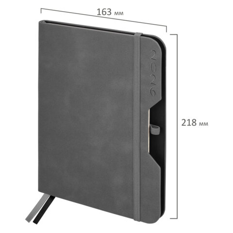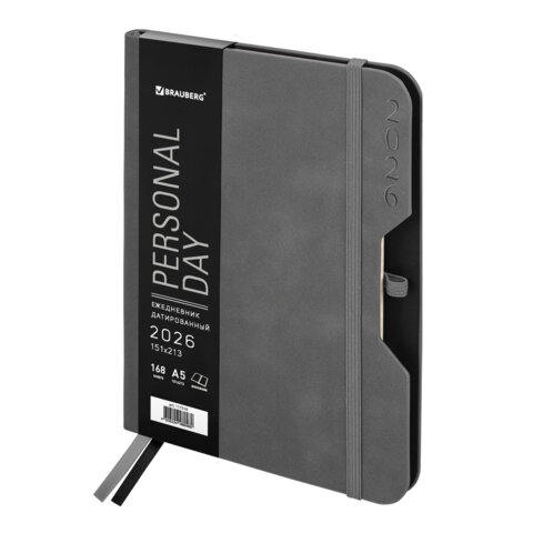 Ежедневник датированный 2026, А5, 151х213 мм, BRAUBERG "Note", под кожу, держатель для ручки, серый, 170329, купить в Грант СПБ