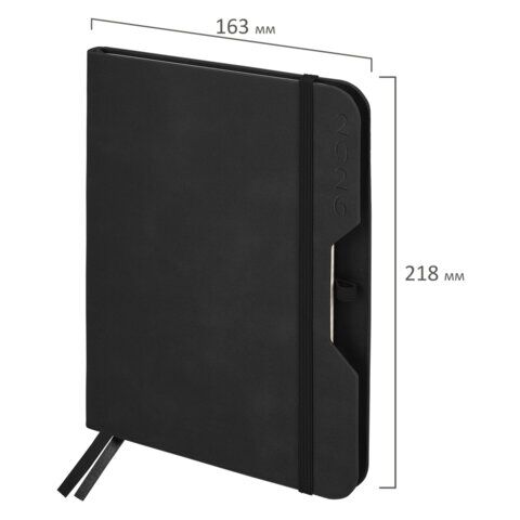 Ежедневник датированный 2026, А5, 151х213 мм, BRAUBERG "Note", под кожу, держатель для ручки, черный, 170326, купить в Грант СПБ