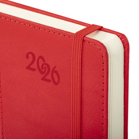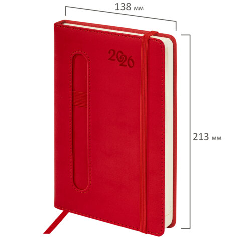 Ежедневник датированный 2026, А5, 138x213 мм, BRAUBERG "Optimal", под кожу, резинка, держатель для ручки, красный, 170277