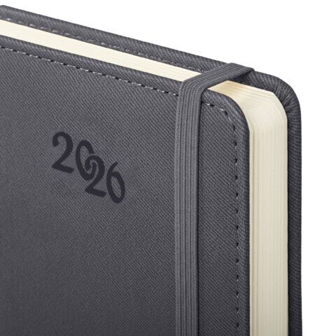 Ежедневник датированный 2026, А5, 138x213 мм, BRAUBERG "Optimal", под кожу, резинка, держатель для ручки, серый, 170280, купить в Грант СПБ