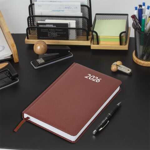 Обложка датированного ежедневника BRAUBERG "Profile" выполнена из приятного на ощупь рельефного материала, имитирующего фактурную кожу, и выдержана в актуальном шоколадном цвете. Модель подойдёт тем, кто предпочитает сдержанный стиль и деловой формат. Вну