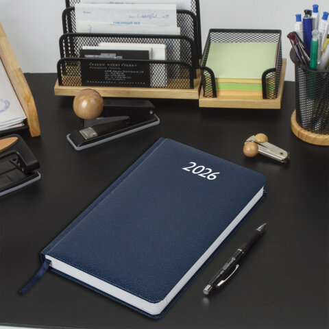 Обложка датированного ежедневника BRAUBERG "Profile" выполнена из приятного на ощупь рельефного материала, имитирующего фактурную кожу, и выдержана в элегантном синем цвете. Модель подойдёт тем, кто предпочитает сдержанный стиль и деловой формат. Внутренн
