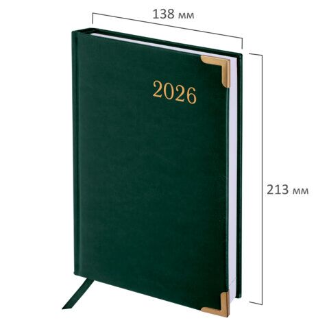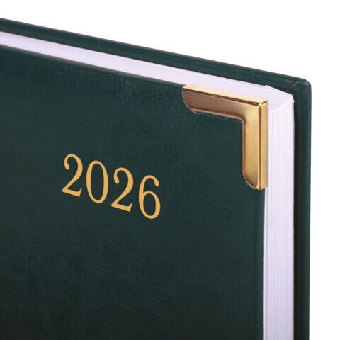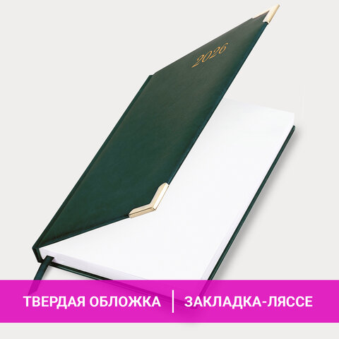Ежедневник датированный 2026 А5 138x213мм BRAUBERG Senator, под кожу, зеленый, 169942, купить в Грант СПБ