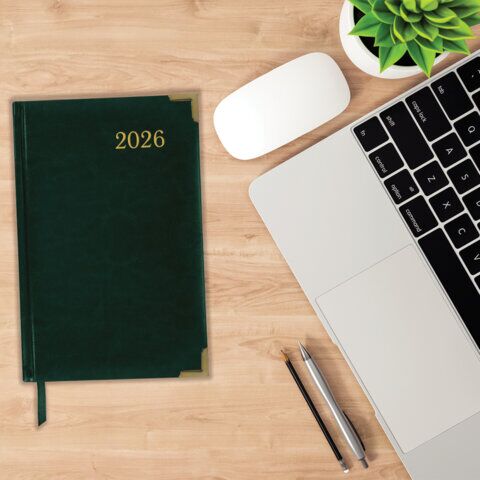 Ежедневник датированный 2026 А5 138x213мм BRAUBERG Senator, под кожу, зеленый, 169942