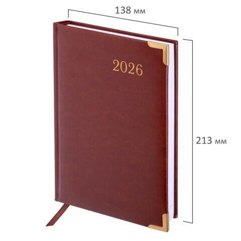 Ежедневник датированный 2026, А5, 138x213 мм, BRAUBERG "Senator", под кожу, коричневый, 169940, купить в Грант СПБ