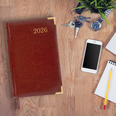 Ежедневник датированный 2026, А5, 138x213 мм, BRAUBERG "Senator", под кожу, коричневый, 169940