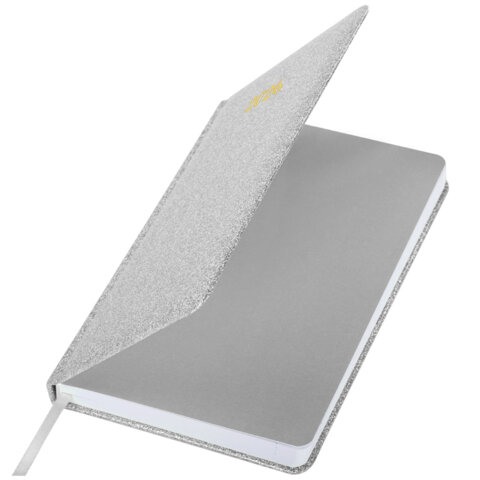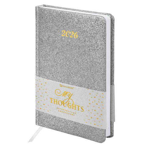 Ежедневник датированный 2026, А5, 138x213 мм, BRAUBERG "Sparkle", под кожу, блестки, серебристый, 170251, купить в Грант СПБ