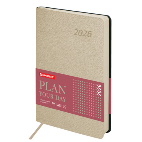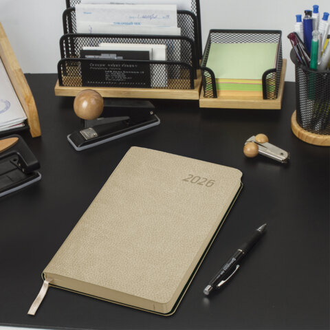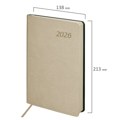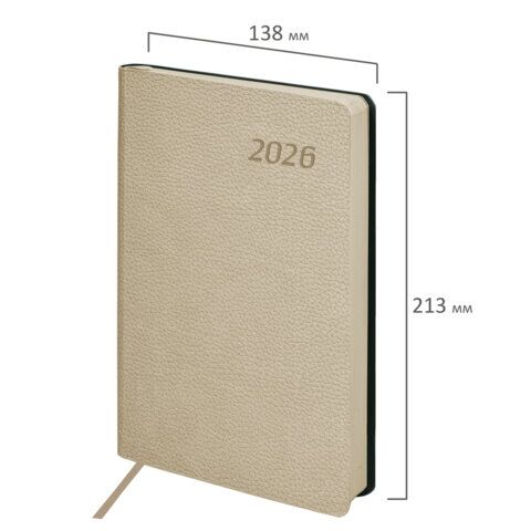 Ежедневник датированный 2026 А5 138x213 мм, BRAUBERG "Stylish", под кожу, гибкий, бежевый, 169955, купить в Грант СПБ
